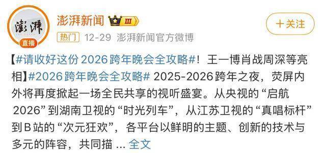 距离2026年只剩不到一天,央视和各大卫视的跨年晚会名单也不时官宣好意思满。
