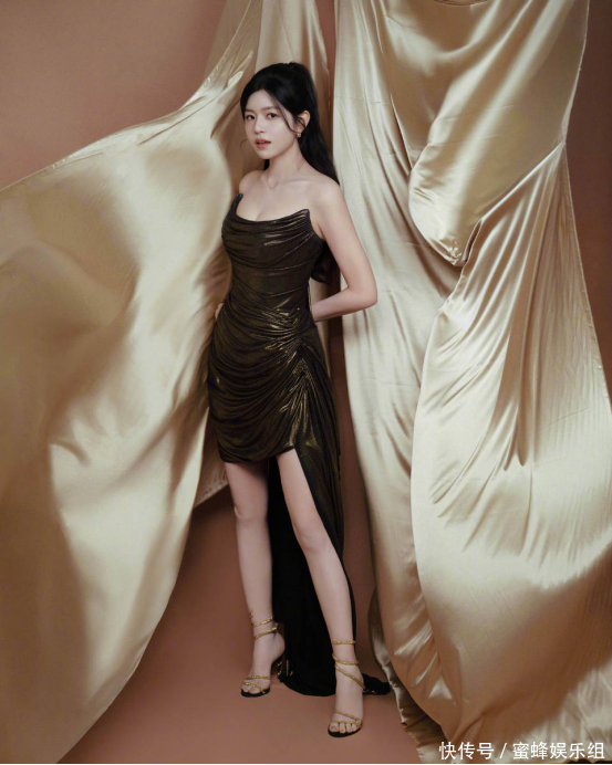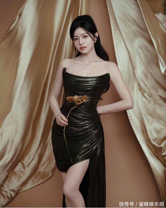 镜头前的陈妍希,完整独霸了这套黑金拖尾裙,气场全开却不凌厉,瑰丽动东谈主却不艳俗。她时而手持金花,侧身而立,展现出柔好意思侧颜与唯妙弧线,目光温暖又有劲量;时而直面镜头,笑貌清甜,脸卵白皙、好意思腿吸睛,将仙女感与进修好意思完整交融;时而轻轻撩动裙摆,看成优雅随心,每一个短暂王人好意思得极具氛围感,每一张写照王人号称壁纸级别。