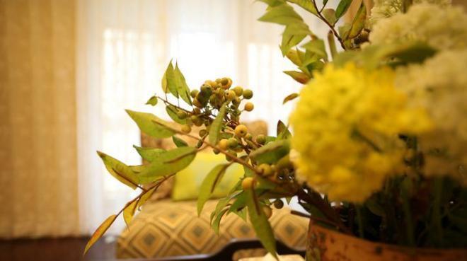 茶几上的花和花瓶是HH的,荒疏着当然田园的滋味