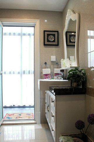 主卫的石材花了点心念念,聘用玄色即是为了保抓日久的算帐整洁,能作念台下盆的尽量聘用台下盆