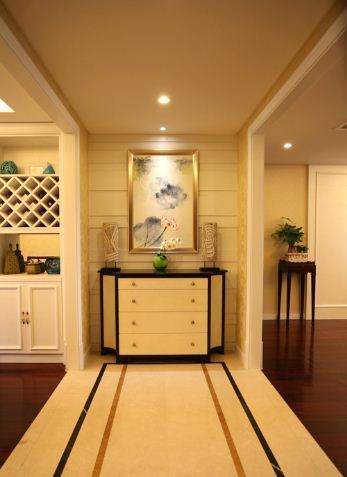 从进门处看玄关,玄关柜是有益抠图定制的,玄关画是在淘宝上找了好久的写意油画。纯洁销耗配簇新绿,突出亮眼,让东谈主心思愉悦。