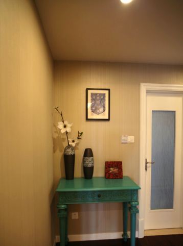 蓝本进门莫得玄关,主卧的门从客厅进。再行设想后有了障碍周折的过谈,选了一款乡村格调的绿色边几,在空间革新中至极亮眼。