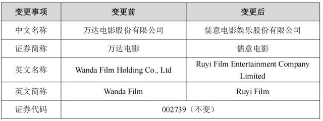 这次改名源于公司边界权变更。2024 年 4 月 15 日,万达电影完成实控东说念主变更,柯利明成为公司新施行边界东说念主,儒意系旗下企业竣事对公司的全资控股。公告称,改名是为契合公司全新计谋发展标的,不存在毁伤公司及推动利益的情形。